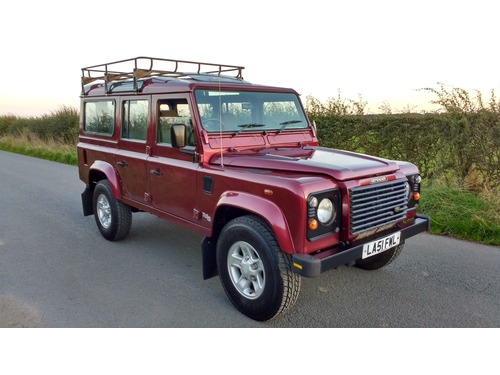 You are Looking at a stunning 2002 51 reg Land Rover Defender 110 County Station Wagon with 9 Seats, having 4 individual to the rear in the rare gleaming Alveston Red